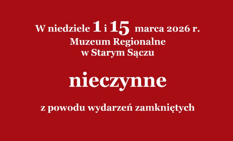 W niedziele 1 i 15 marca 2026 r. Muzeum Regionalnew Starym Sączu nieczynne z powodu wydarzeń zamkniętych
