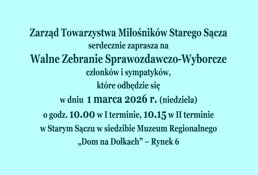 Na Walnym Zebraniu Sprawozdawczo-Wyborczym 1 marca b. r. członkowie Towarzystwa Miłośników Starego Sącza ponownie powierzyli prace w Komisji Rewizyjnej: Zofii Pychyrek jako przewodniczącej oraz Andrzejowi Nicpońskiemu i Tadeuszowi Rejowskiemu jako członkom. Komisja Rewizyjna jest statutowym organem kontrolnym TMSS. Do jej zadań należy: kontrola gospodarki finansowej pod względem celowości i prawidłowości wydatków, bilansu finansowego oraz sprawozdań Zarządu co do stanu majątkowego Towarzystwa.